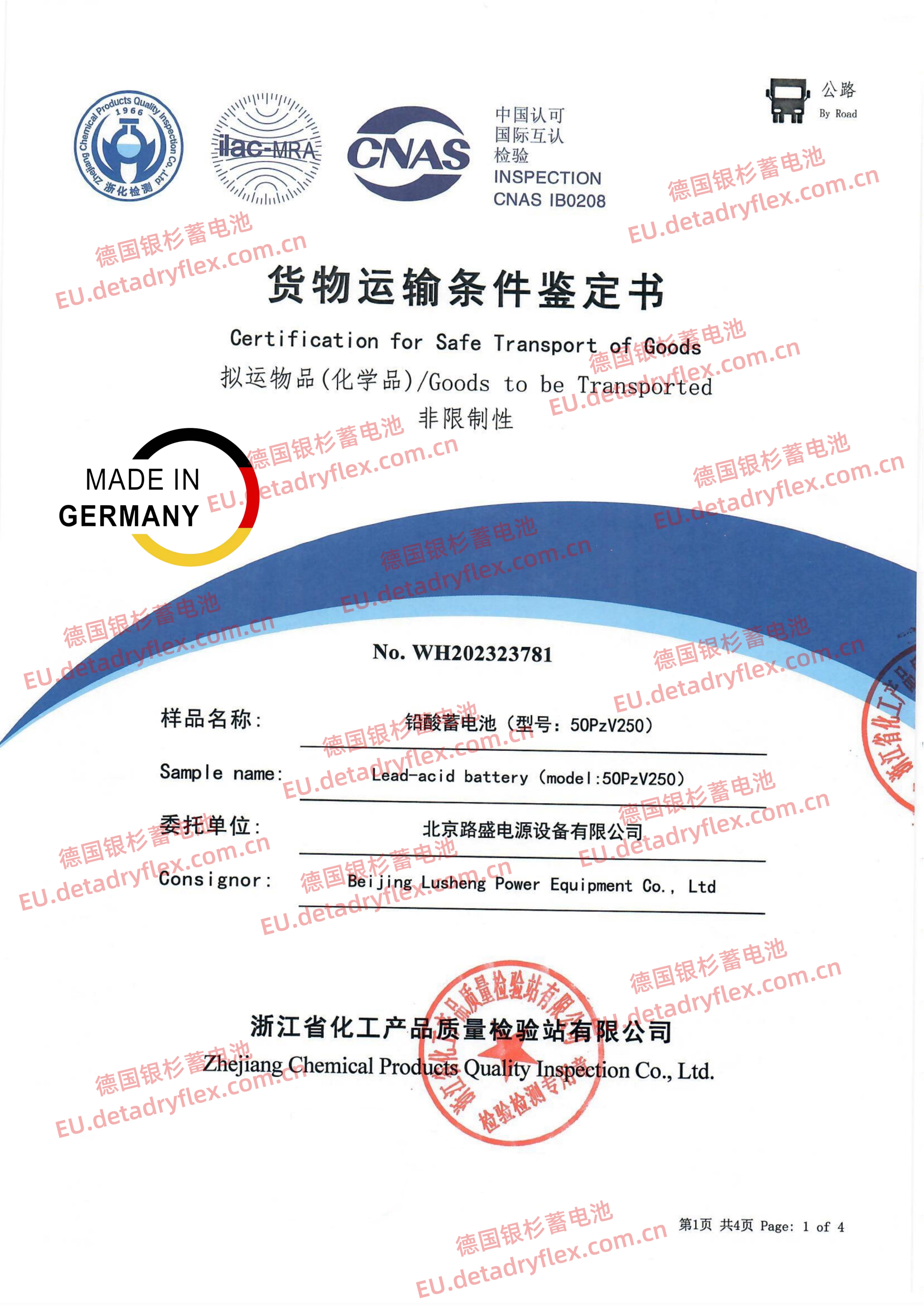德國銀杉蓄電池【貨物運(yùn)輸條件鑒定書】